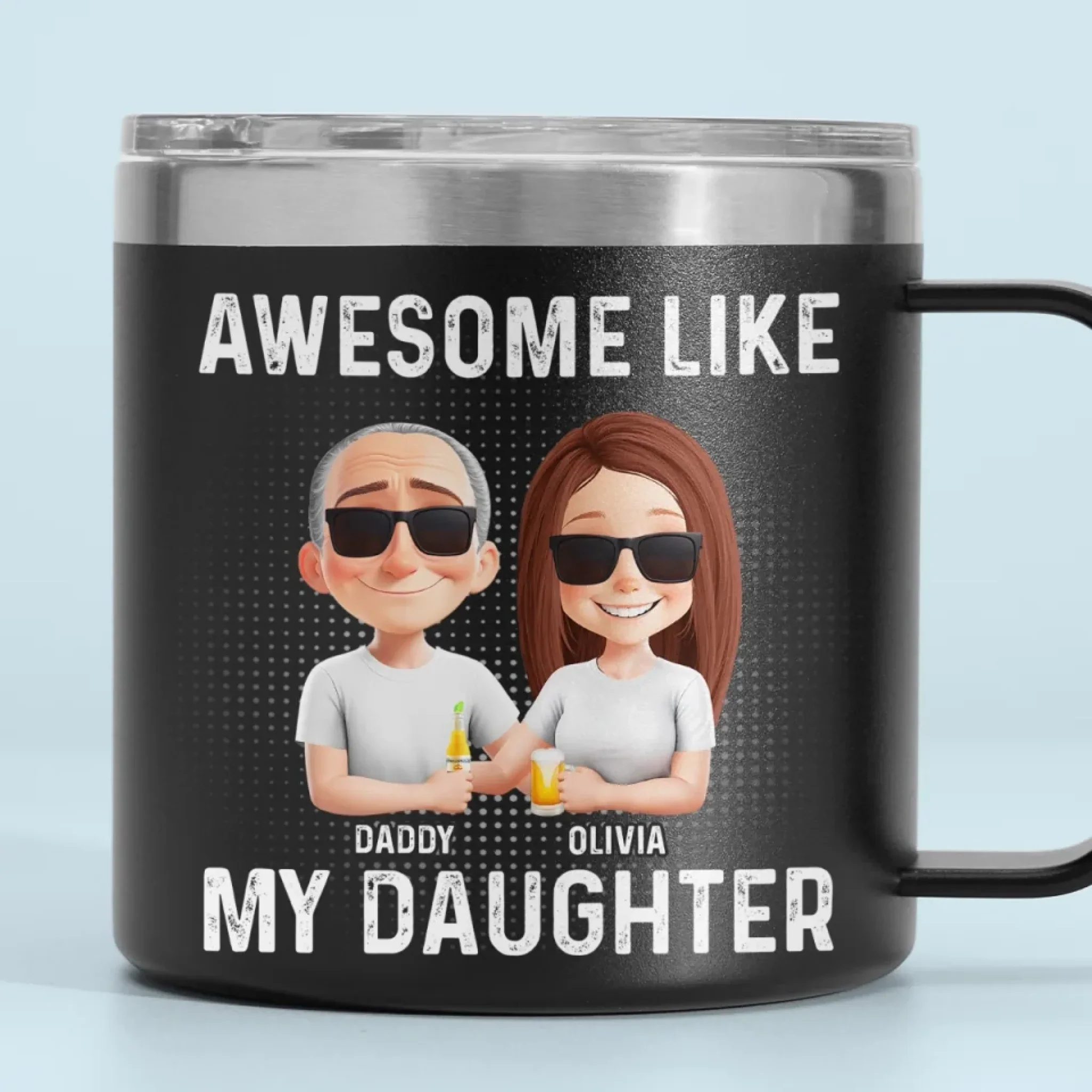 Awesome Like My Daughter - Family Personalized Custom 14oz Stainless Steel Tumbler With Handle - Father's Day, Gift For Dad