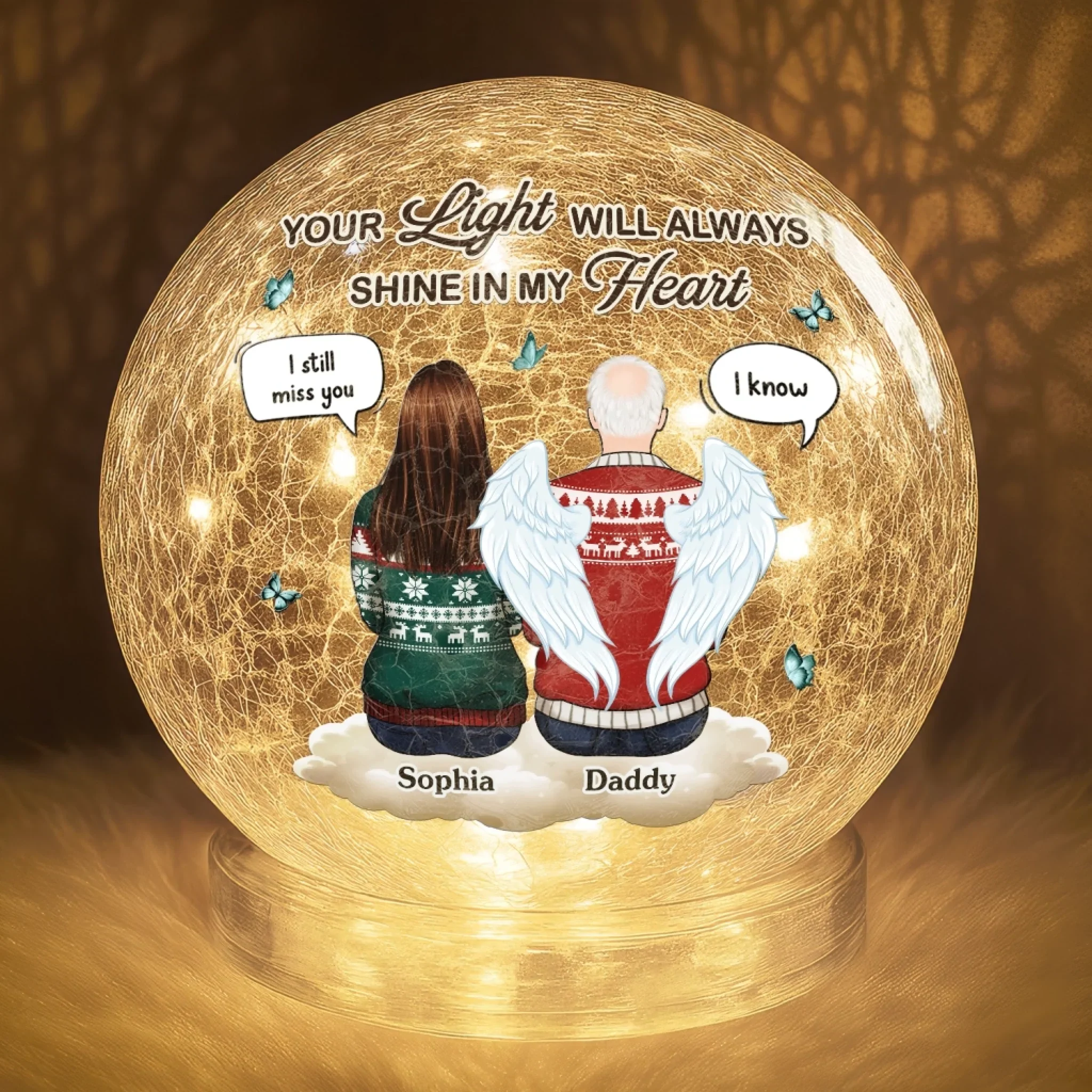 Custom Crackle Glass LED Ball - Personalized Christmas Memorial Sympathy Gifts For Loss Of Mom, Dad - Your Love Still Lights My Way