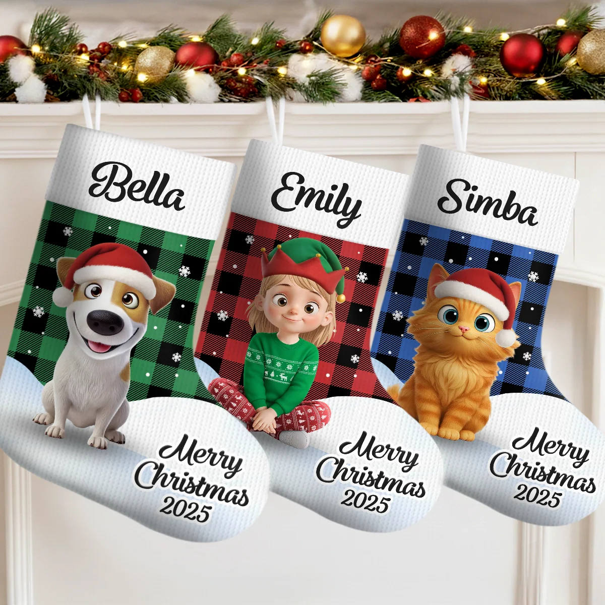 Custom Christmas Stocking - Personalized Christmas Birthday Gifts For Family, Dog Cat Lovers - Santa s Favorites, All Lined Up