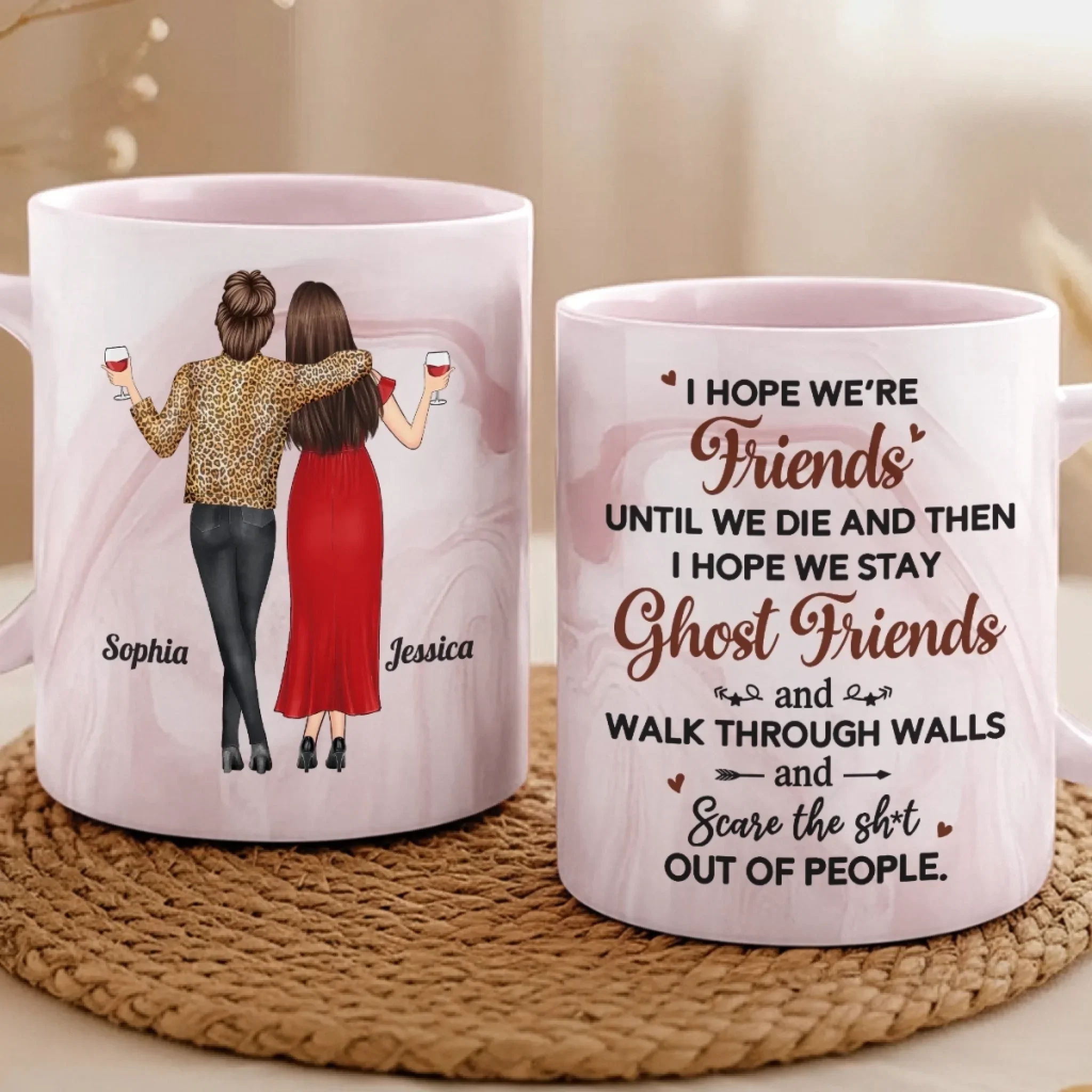 Custom 11oz Pink Marble Mug - Personalized Best Friend Birthday Gifts For Women, Besties, Sisters, BFF - Together We Shine Brighter
