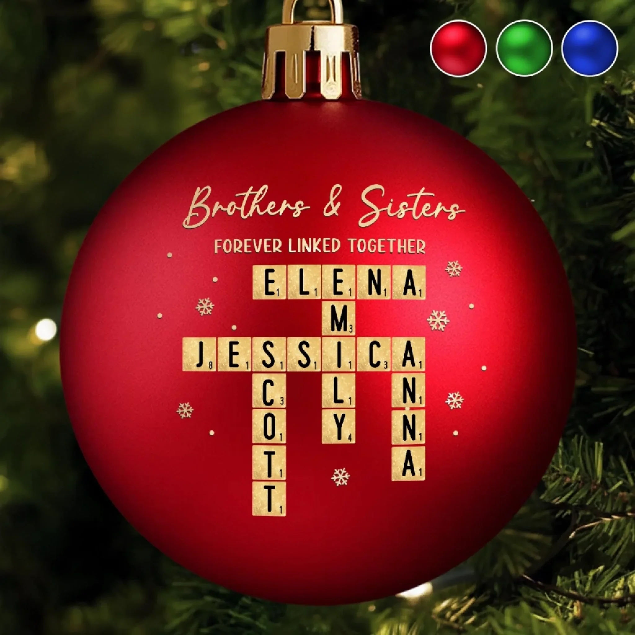 Custom Scrabble Colored Ball Ornament - Personalized Christmas Birthday Gifts For Brother, Sister - Spelling Out Our Joy