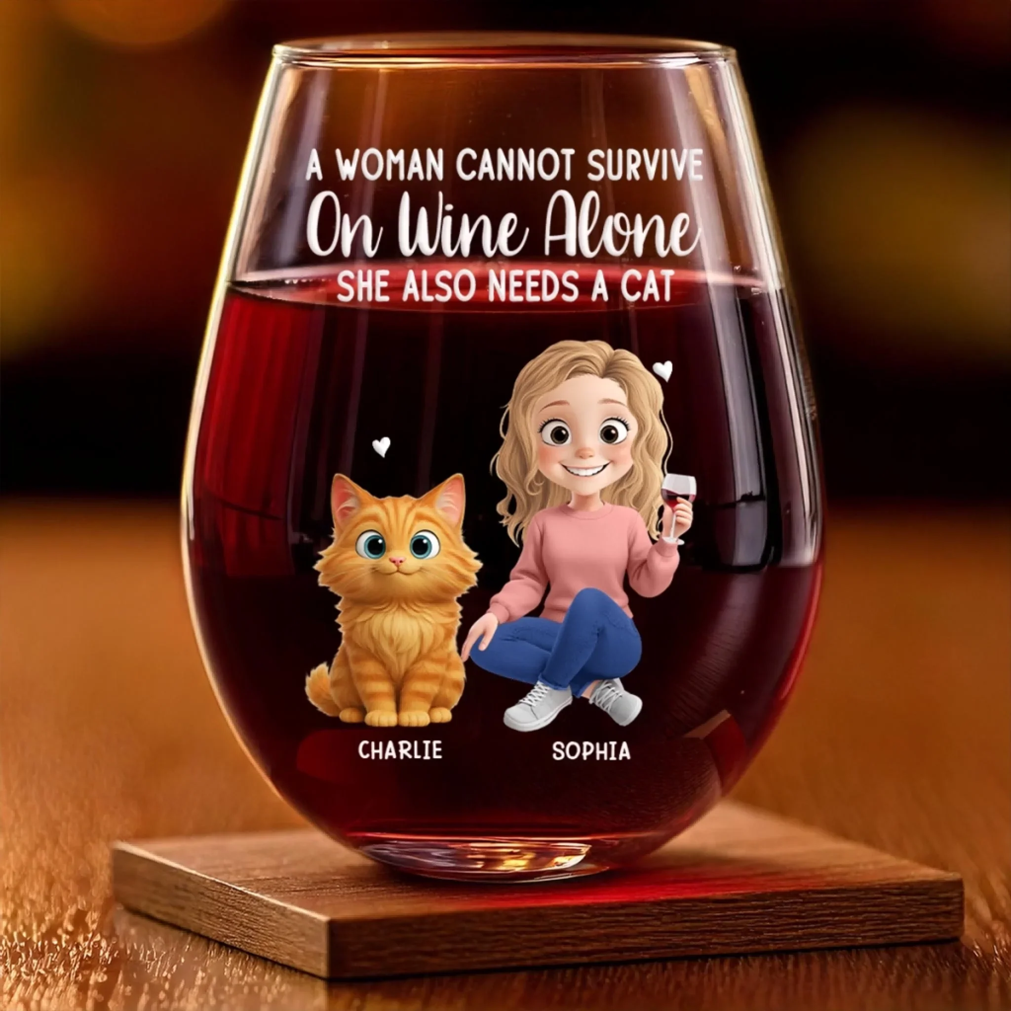 Custom Wine Glass - Personalized Christmas Birthday Gifts For Cat Lovers, Cat Mom And Dad - Life Needs A Purr