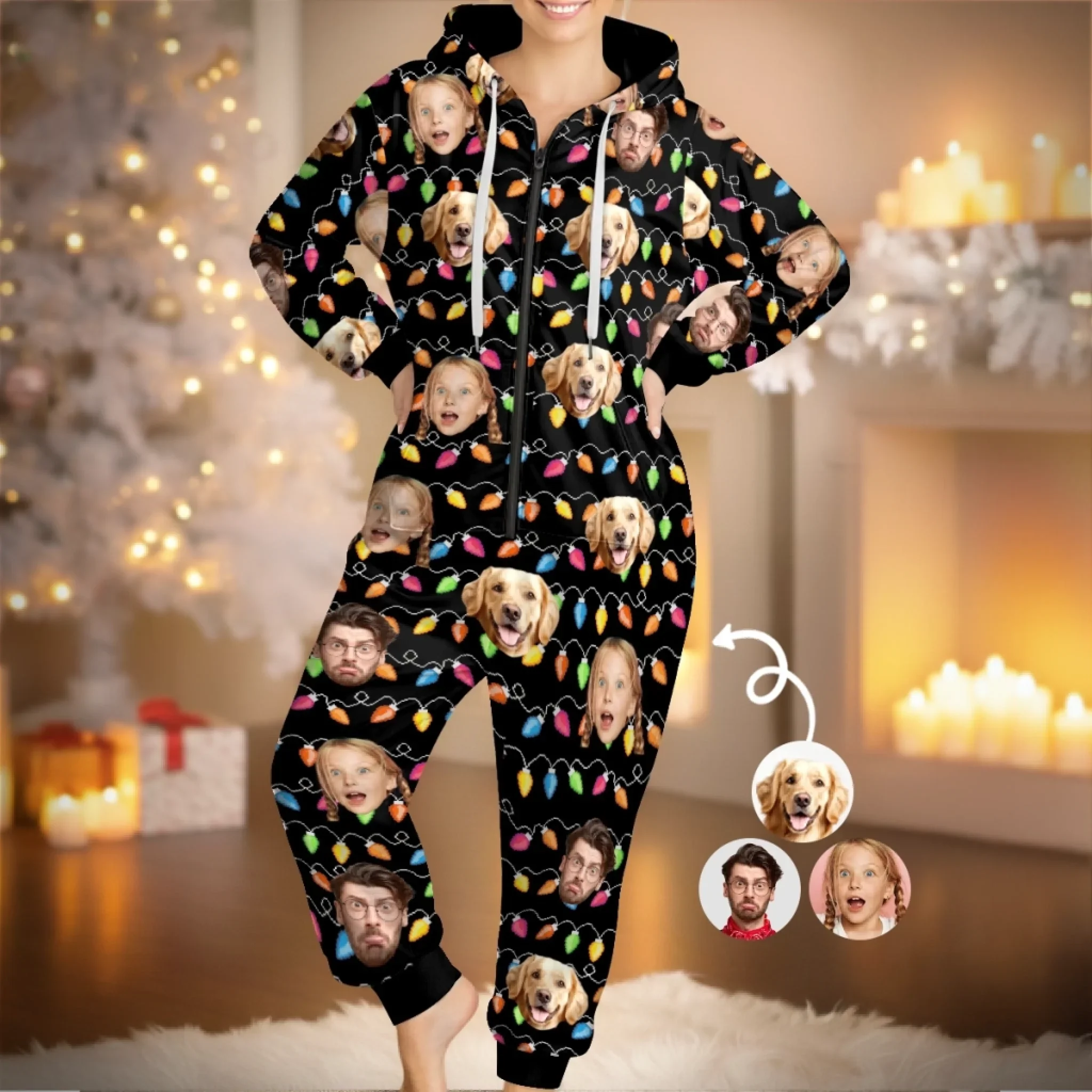 Custom Photo Adult Onesie - Personalized Christmas Birthday Gifts For Family, Dog Cat Lovers - Santa s Favorite Weird Family