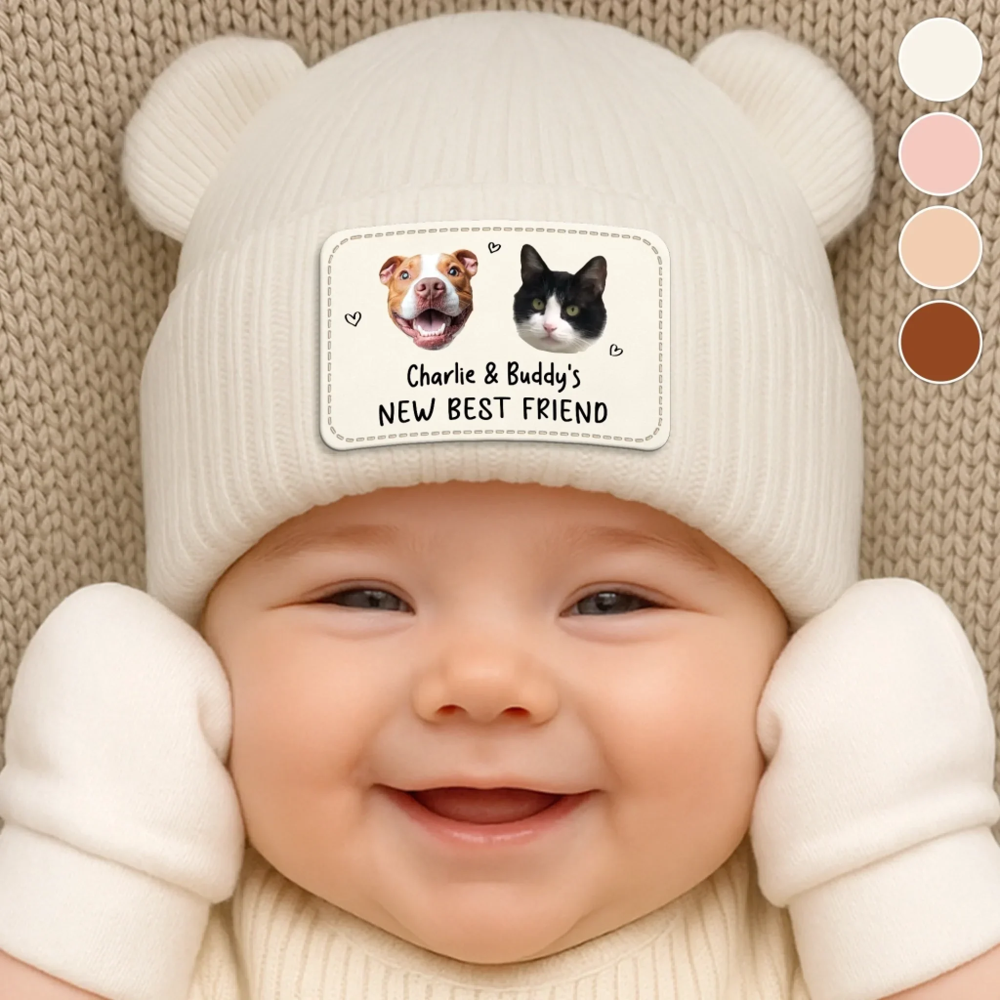 Custom Photo Baby Beanie And Mittens Set - Personalized Baby Shower, Gender Reveal Gifts For New Moms, New Dads, New Parents, Dog Cat Lovers - Dream Big Little One