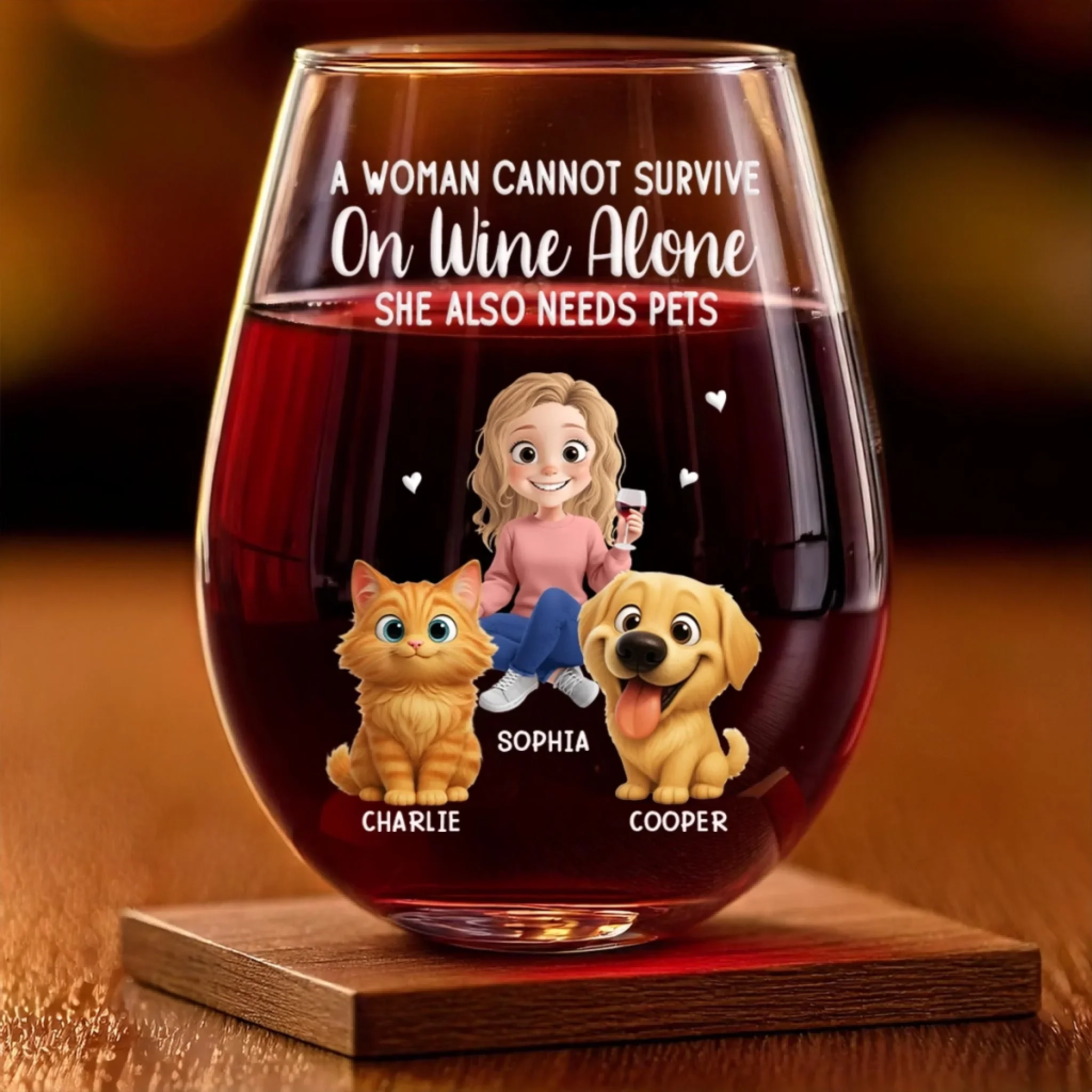 Custom Wine Glass - Personalized Christmas Birthday Gifts For Dog Cat Lovers, Dog Dad And Mom, Cat Owners - Love Is Four Paws
