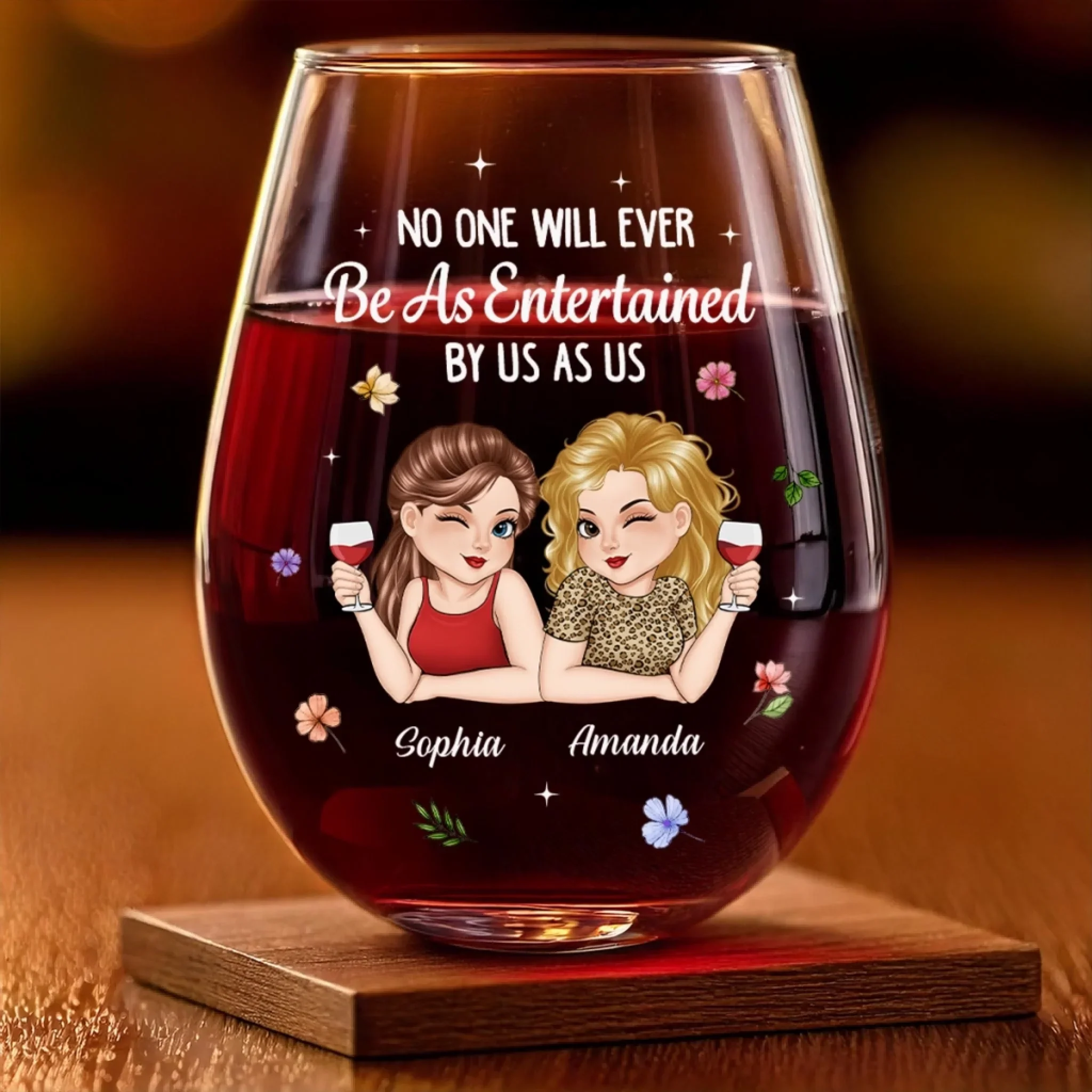 Custom Wine Glass - Personalized Best Friend Birthday Gifts For Women, Besties, Sisters, BFF - Holiday Magic Made With Friends