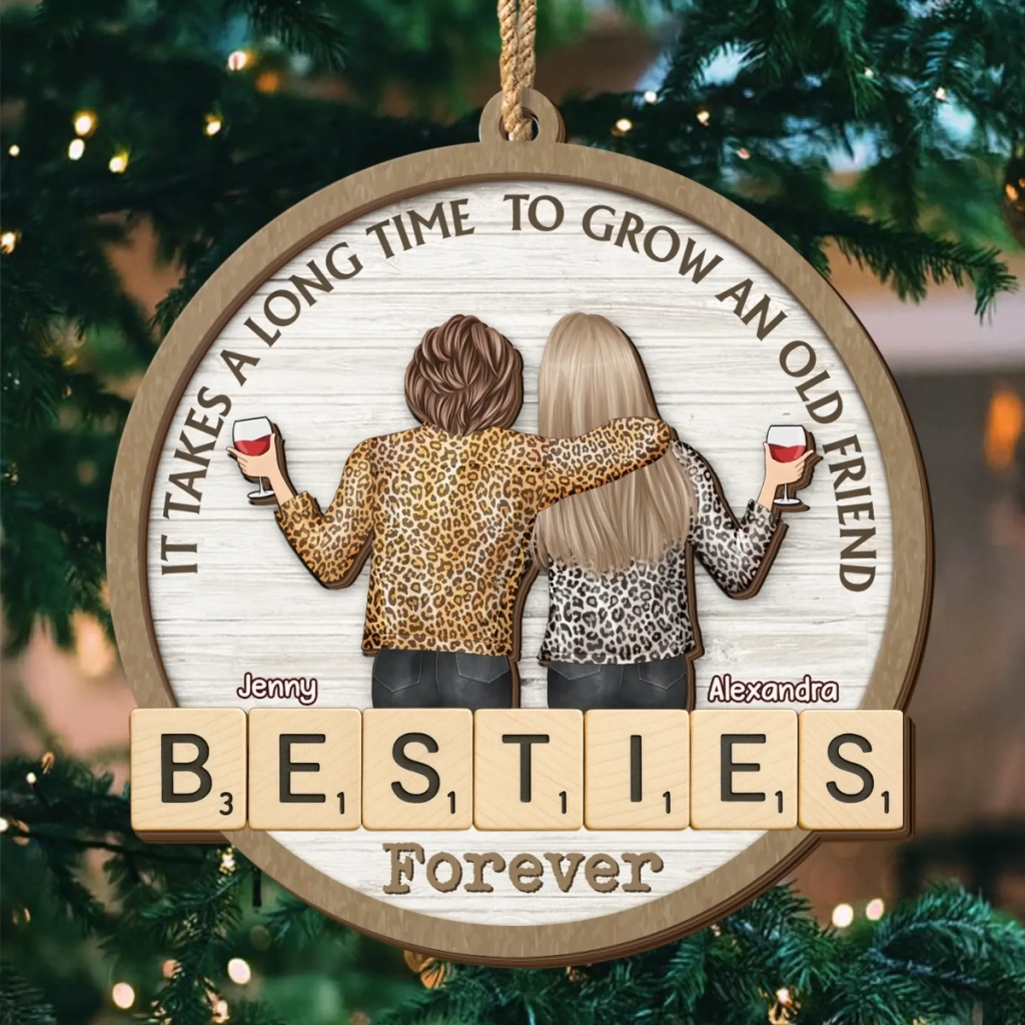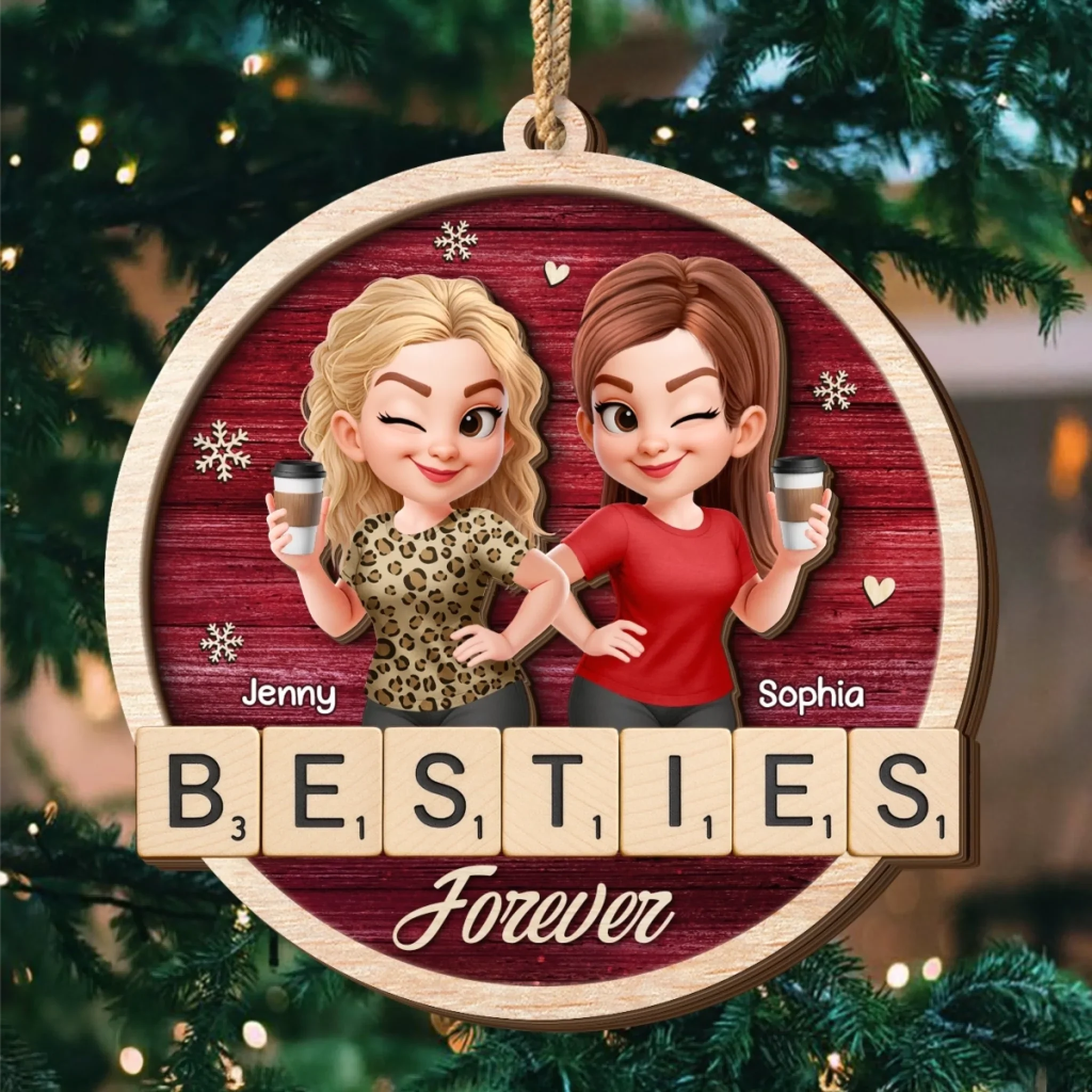 Custom Double Layer Wooden Ornament - Personalized Best Friend Christmas Birthday Gifts For Women, Besties, Sisters, BFF - Frosty Days Warm Hearts
