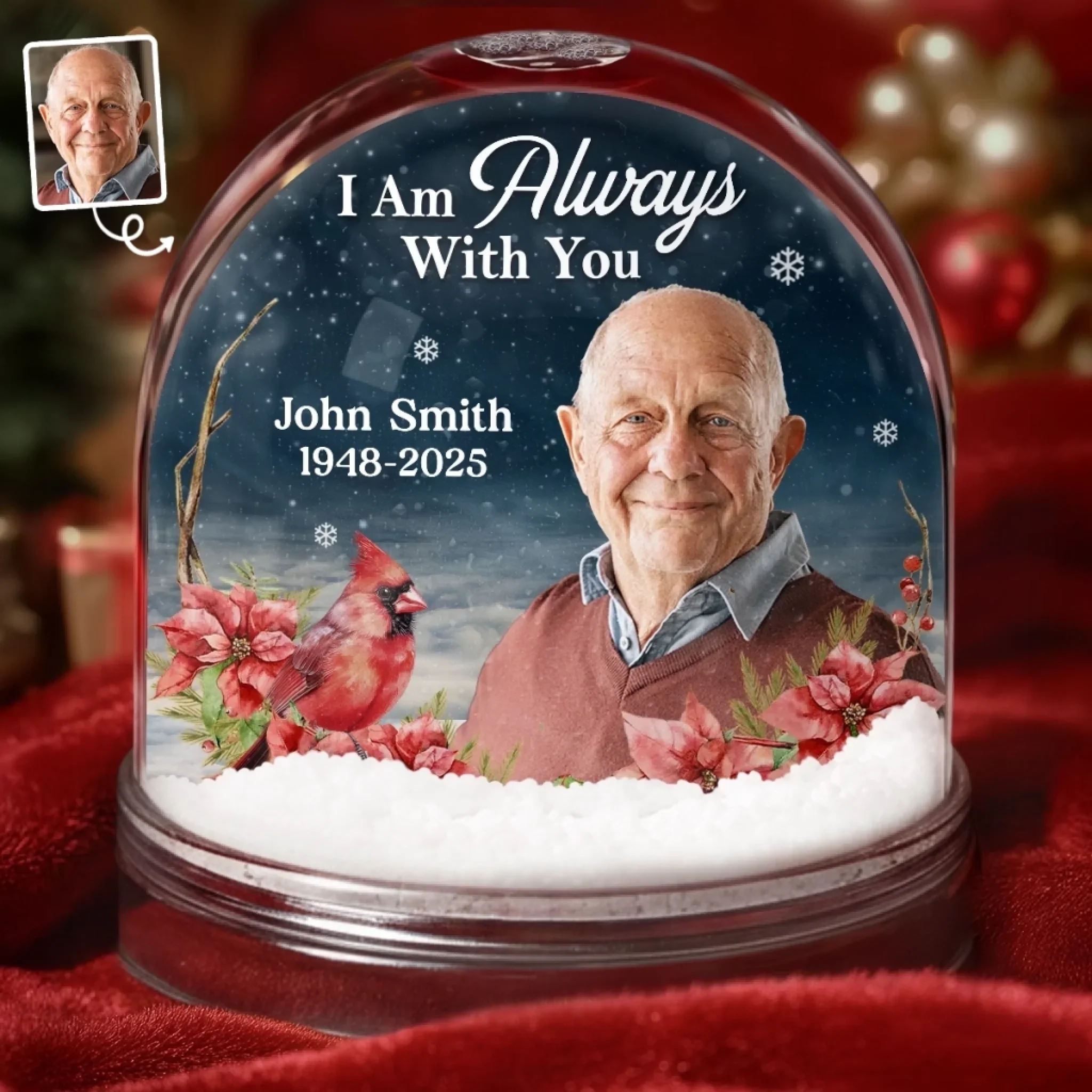 Custom Photo Cardinal Acrylic Snow Globe - Personalized Christmas Memorial Sympathy Gifts For Loss Of Mom, Dad - Always Near Though Worlds Apart